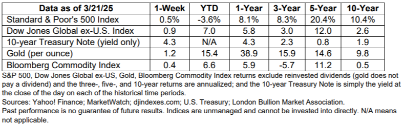 Last week, the Federal Reserve (Fed) left the federal funds rate unchanged, and Fed Chair Jerome Powell soothed markets. He explained that conditions in the labor market were broadly in balance and inflation had eased significantly over the past two years. Overall, the possibility of recession, while rising, remained low.