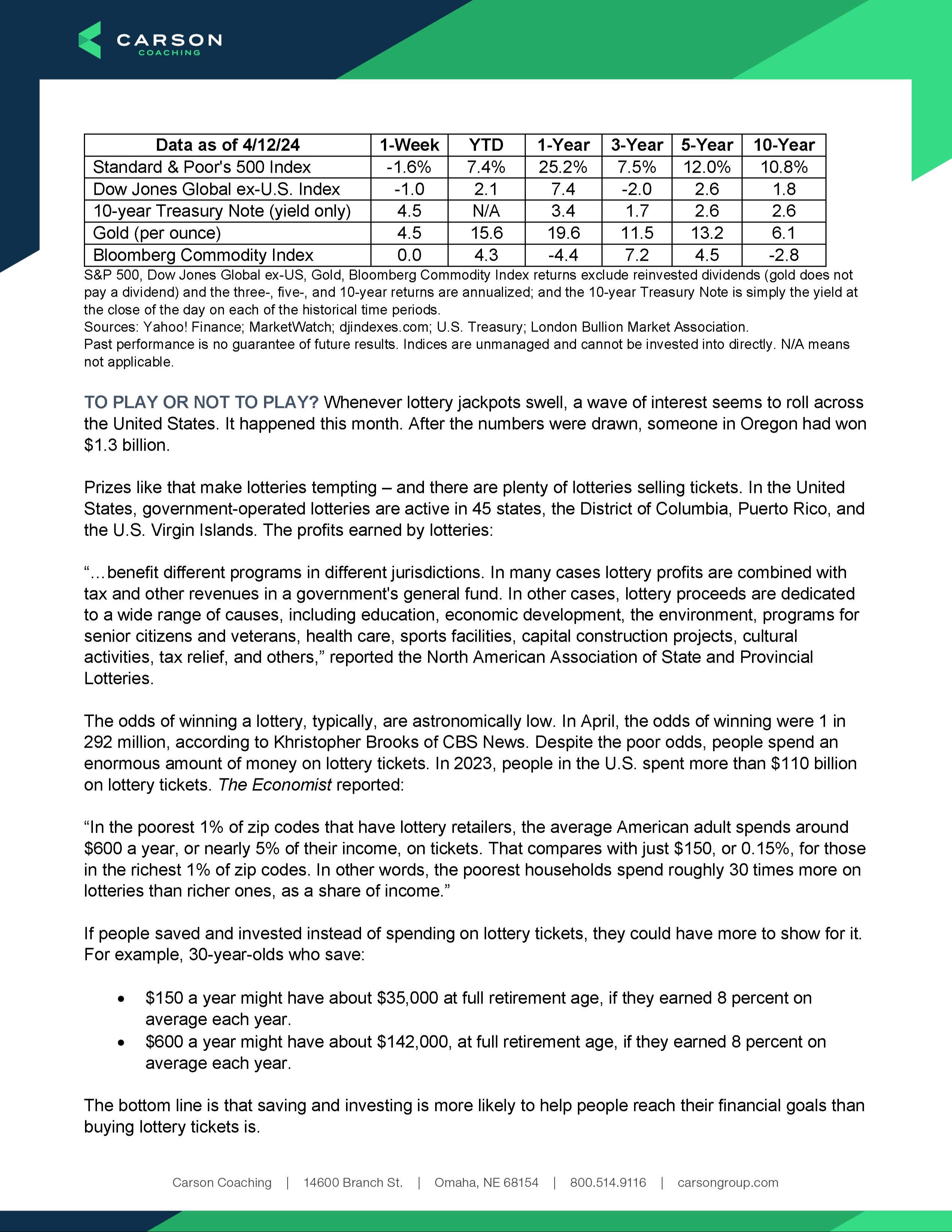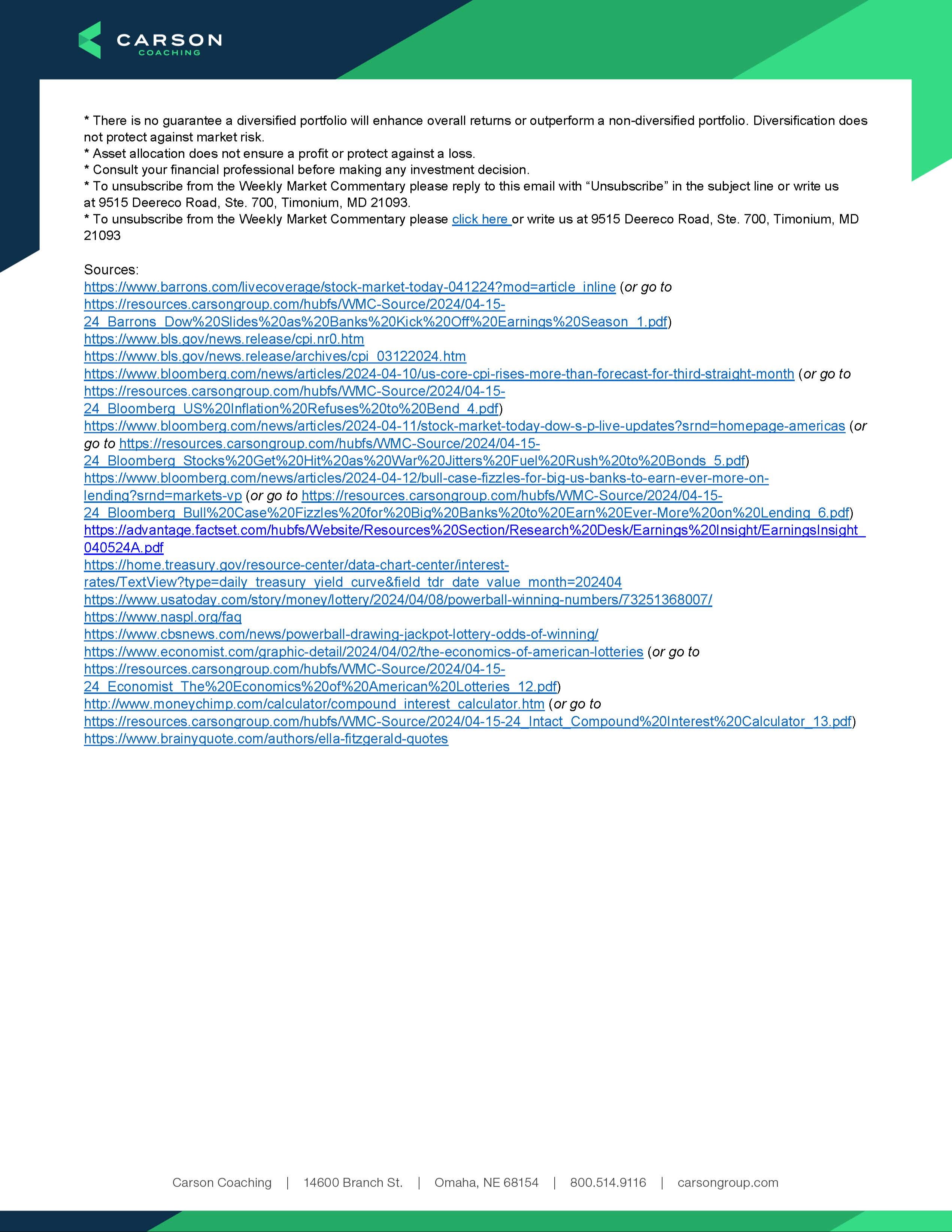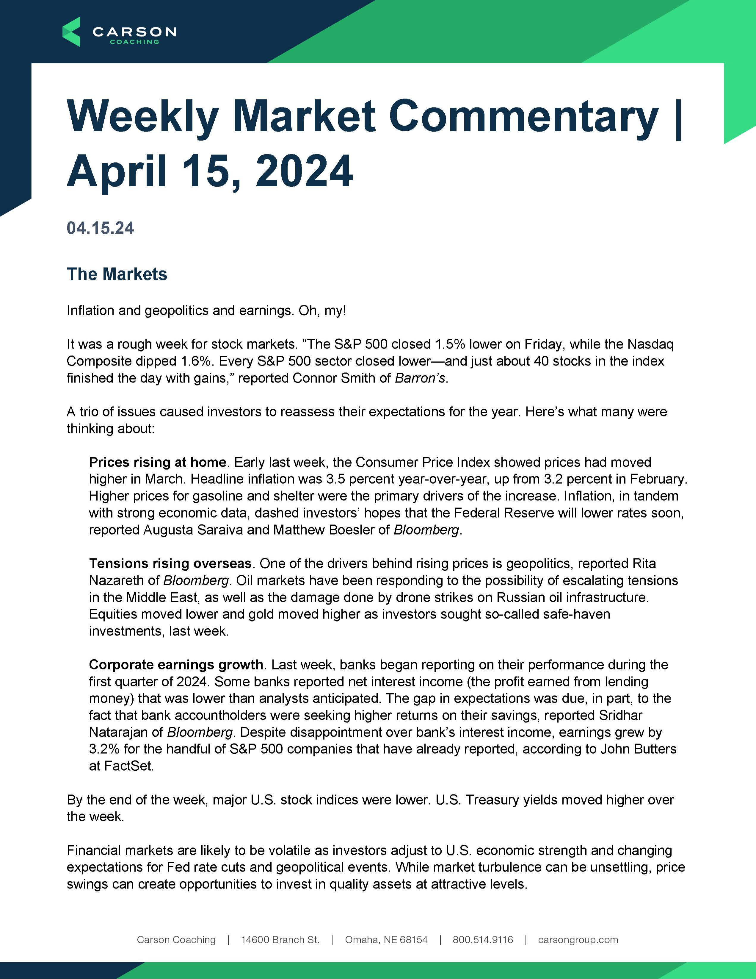 Weekly Market Commentary: Week of April 15