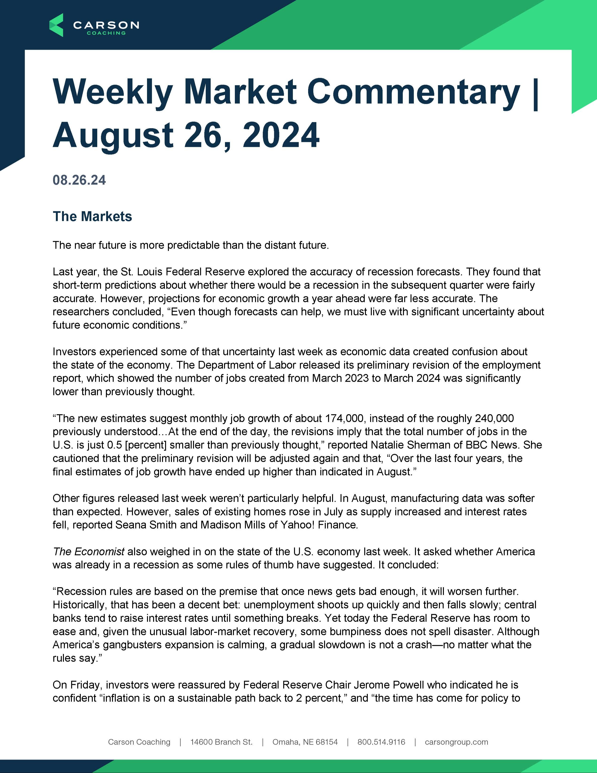 Weekly Market Commentary: Week of August 26