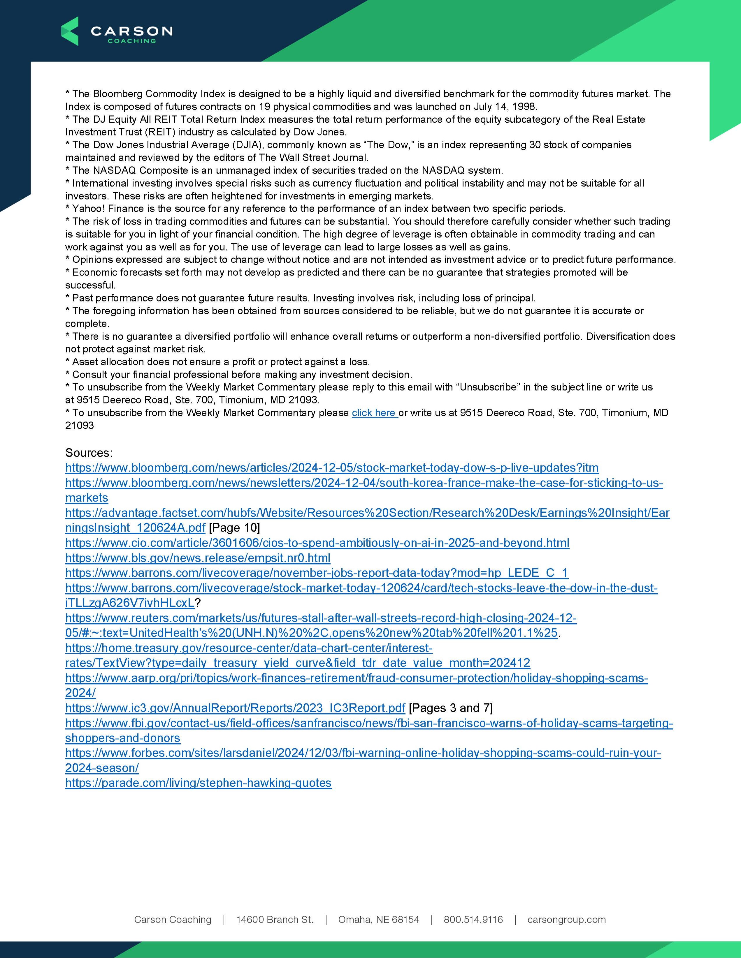 Weekly Market Commentary: Week of December 9