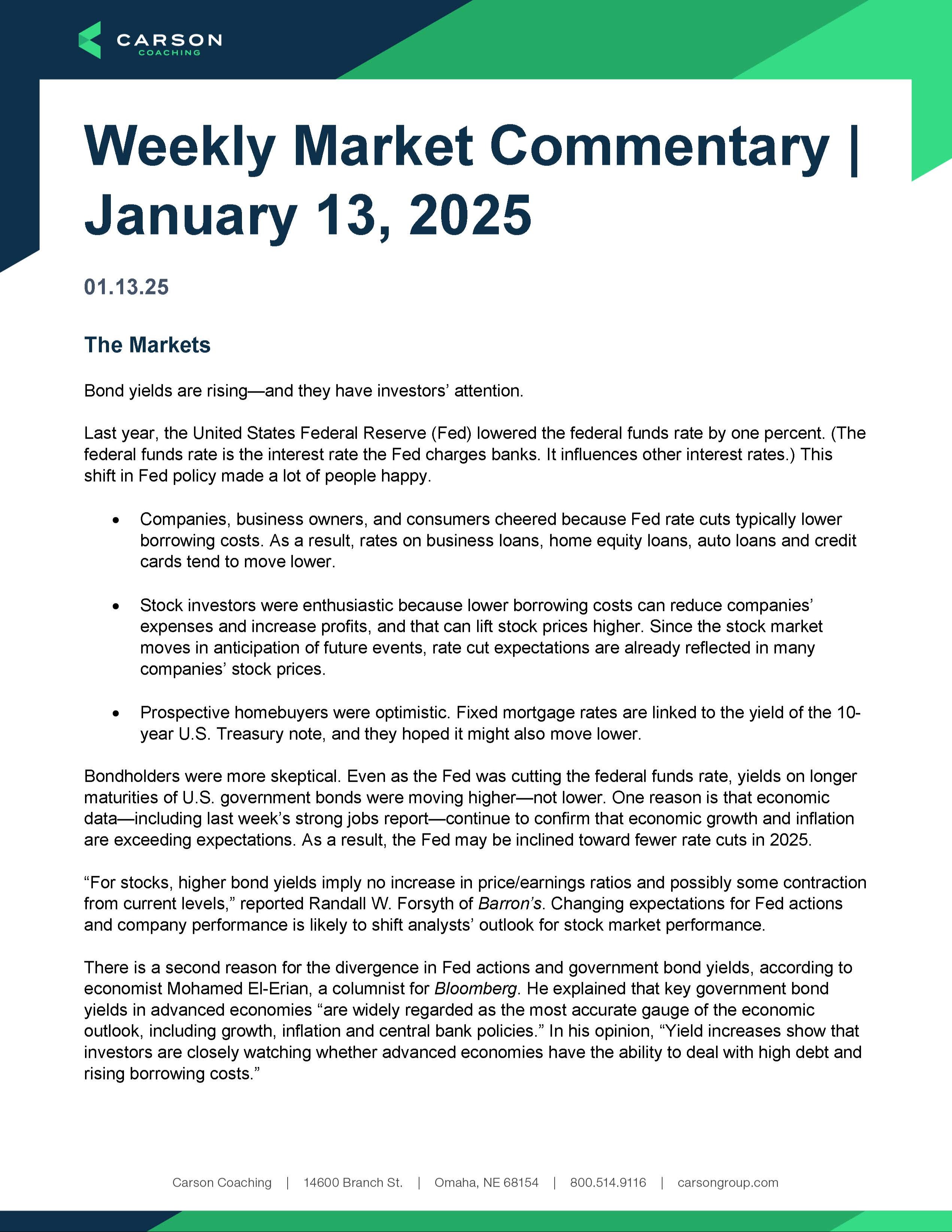 Weekly Market Commentary: Week of January 13