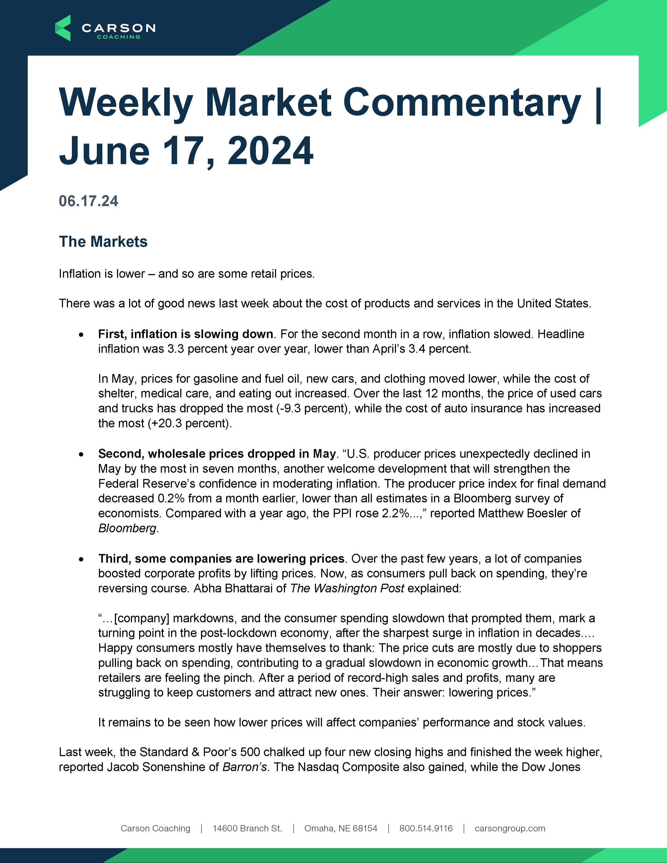 Weekly Market Commentary: Week of June 17th