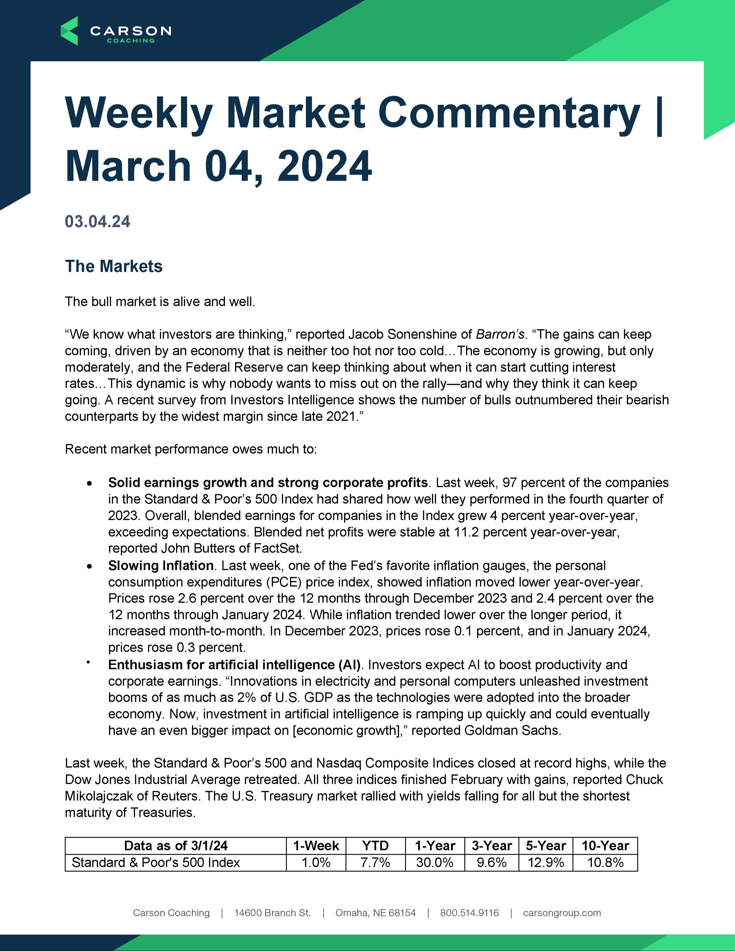 Weekly Market Commentary: Week of March 4