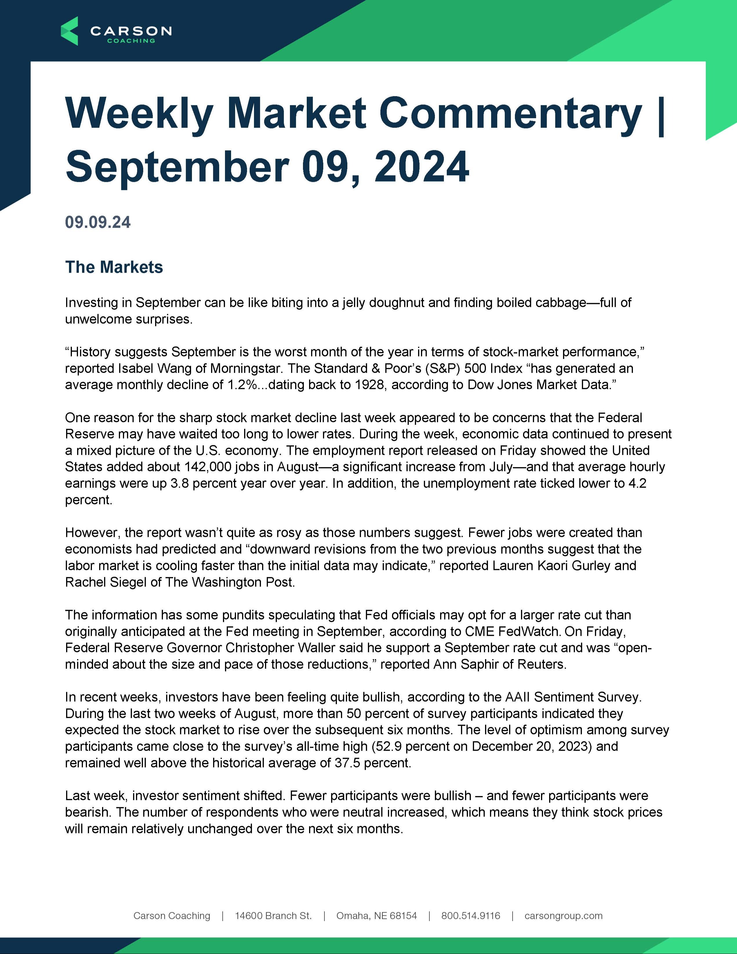 Weekly Market Commentary: Week of September 9